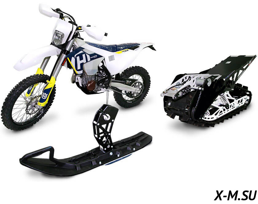 Встречайте комплект из гусеничного движителя и передней лыжи, который «научит» Ваш мотоцикл ездить по снегу и получать незабываемый адреналин от катания!