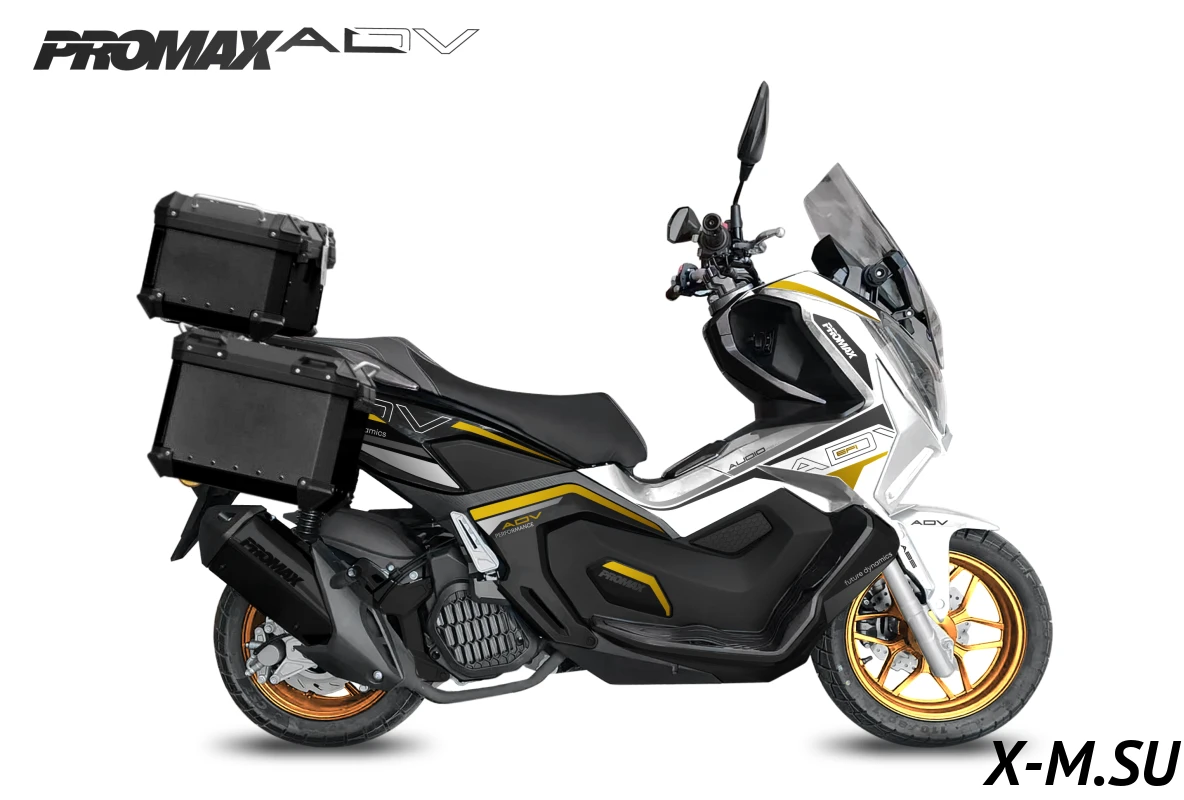 МаксиСкутер PROMAX ADV создан на базе модели кросс-скутера HONDA ADV. Компания PROMAX сотрудничает с HONDA и предлагает более доступный, но качественный аналог скутера HONDA ADV EFI.