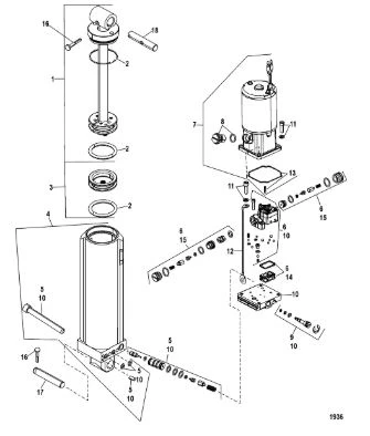 Компоненты гидроподъема 4-Х ТАКТНОГО ПЛМ MERCURY 115 Серийный номер от 1B227000 до 1B366822