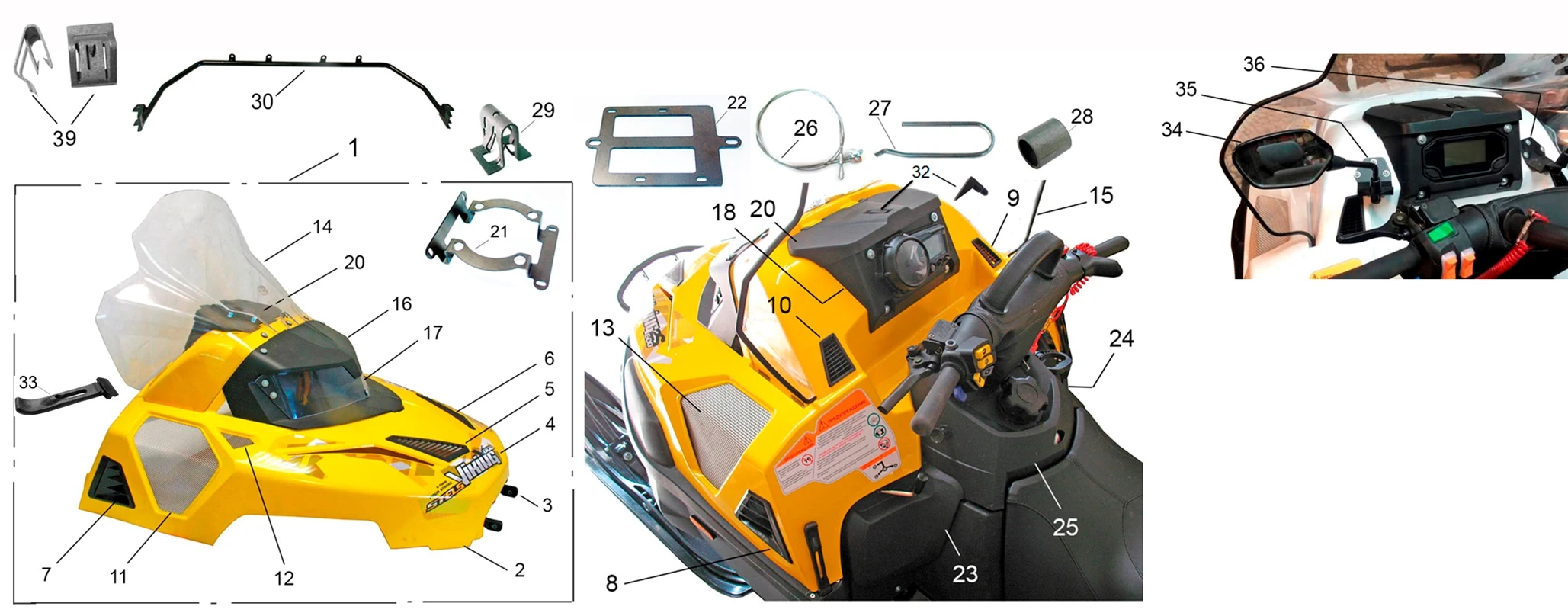 Капот снегохода VIKING 600 в сборе (с фарами), желтый